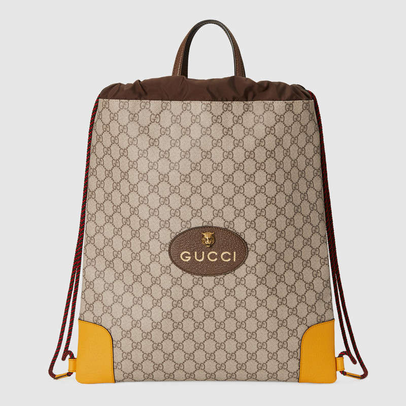 A drawstring backpack made in soft GG Supreme with yellow leather trims. The contrast trims pay homage to the House鈥檚 past, when artisans would repair luggage by replacing worn areas with new ones in any colors that were available.