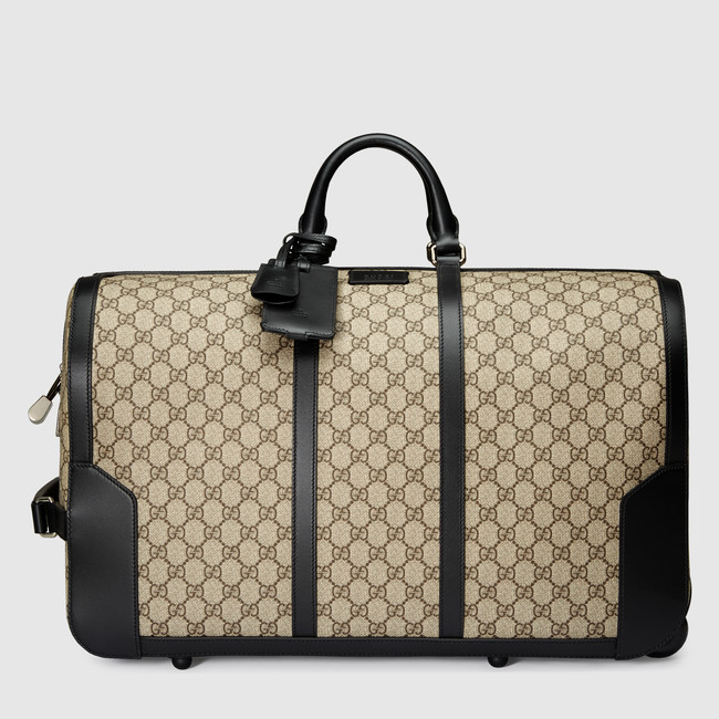 GG Supreme canvas duffle in a convenient carry-on size with wheels.