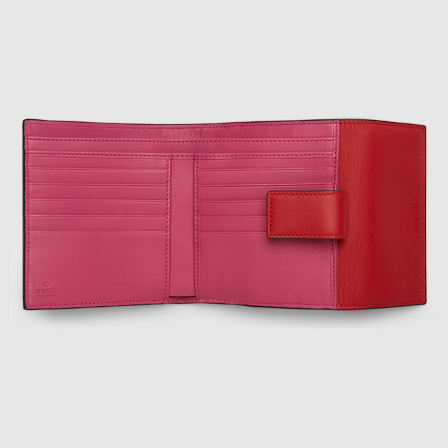 A GG Supreme canvas french flap wallet with a snap closure and a multicolor leather flap.