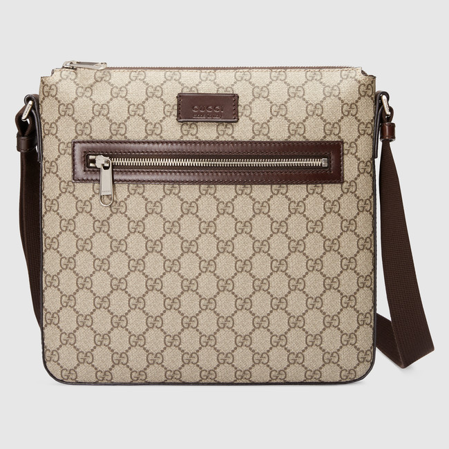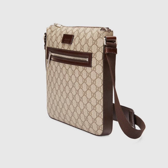 Medium size flat messenger bag in GG Supreme canvas with leather trims.