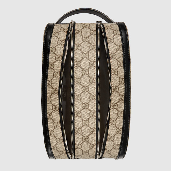 Double zipper GG Supreme canvas toiletry case with black leather trims.