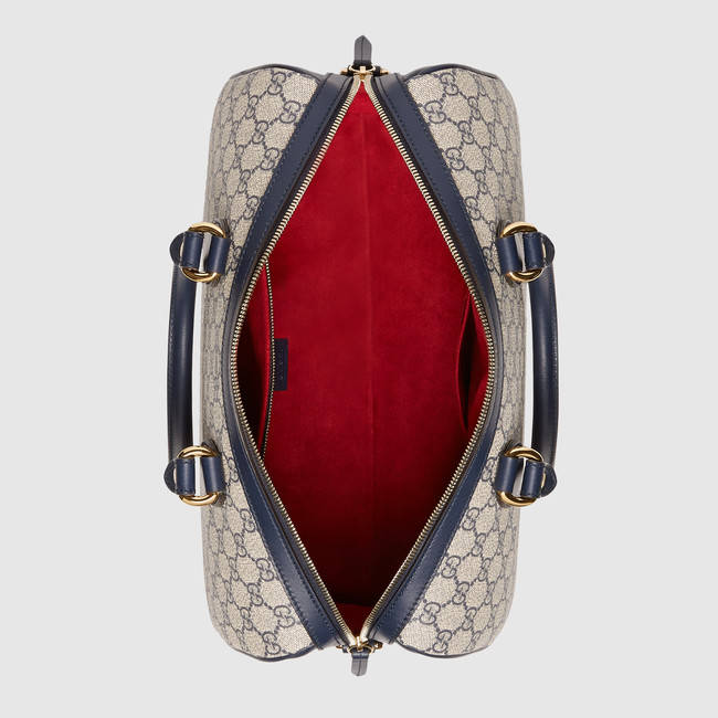 A boston bag shape in our GG Supreme canvas. The handles have been hand-stitched with a padded base.