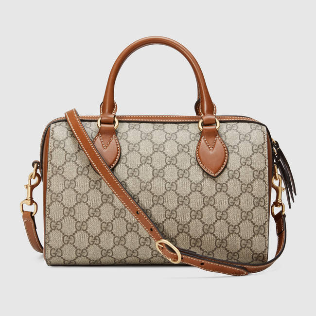 A small boston bag shape in our GG Supreme canvas. The handles have been hand-stitched with a padded base.