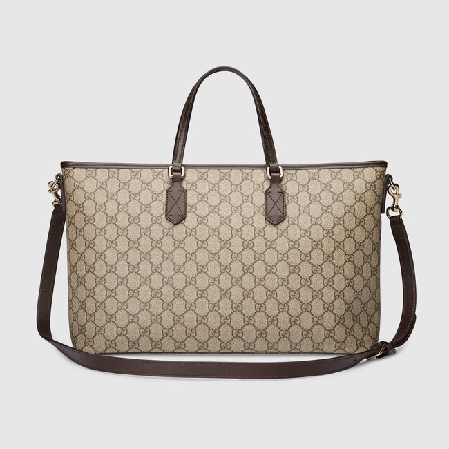 GG Supreme canvas tote with leather trims and reinforced stitching