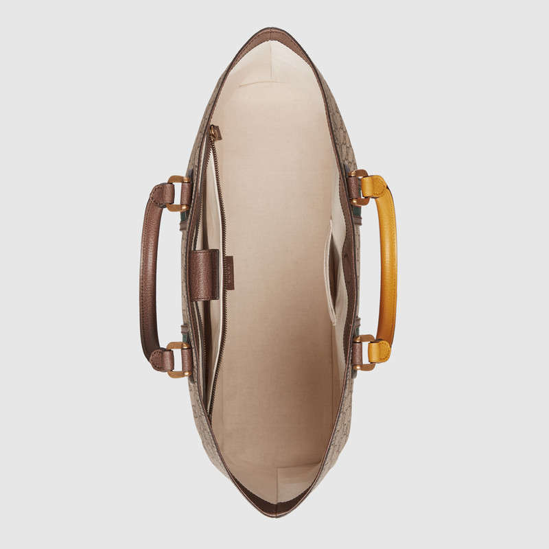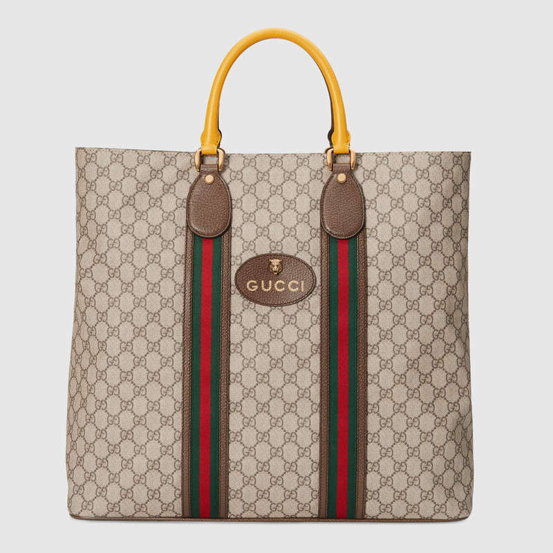 A tote made in malleable soft GG Supreme, crafted from a coated microfiber fabric. The Web stripe details and single yellow leather handle lend a vintage appeal that remains in line with the collection's theme. The contrast handle pays homage to the House鈥檚 past, when artisans would repair luggage by replacing worn handles with new ones in any colors that were available.