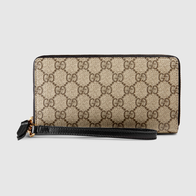 A GG Supreme canvas wrist wallet with a detachable handle.