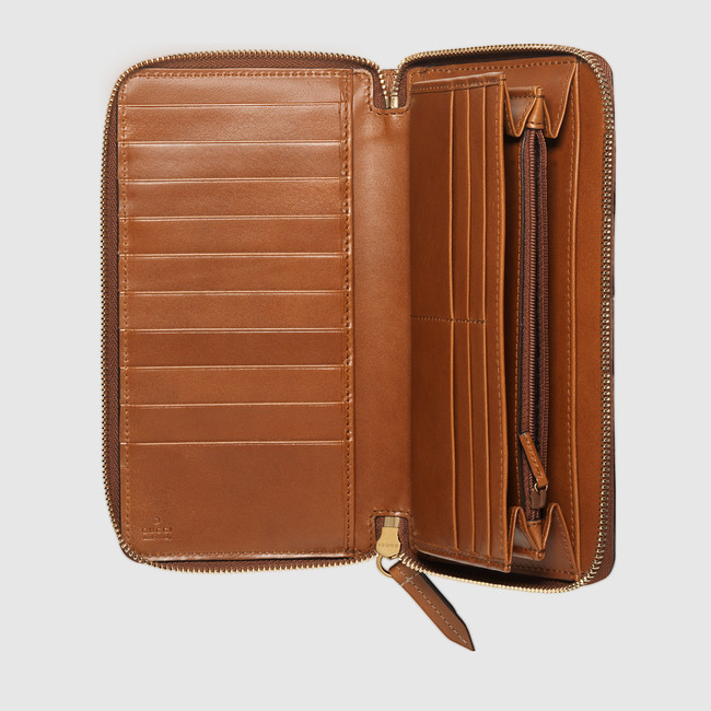 A GG Supreme canvas zip around wallet with a brown leather zipper pull detail