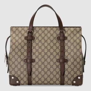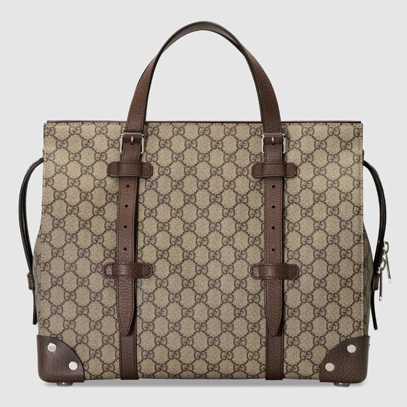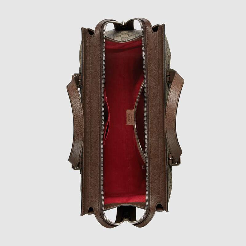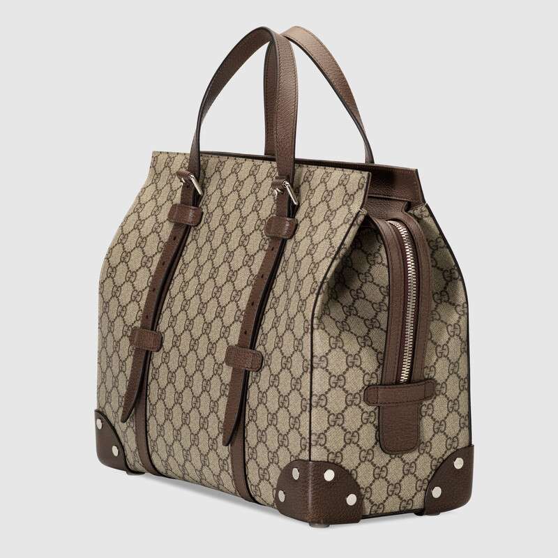 Inspired by vintage travel luggage, the GG Supreme tote bag has a double handled shape, finished with leather corners and zip-top closure. Reminiscent of traditional suitcases, the structured design makes for the perfect travel bag and is finished with logo engraved metal feet. Pieces with versatile ways to wear and style embrace each person who is part of the House鈥檚 individual spirit.