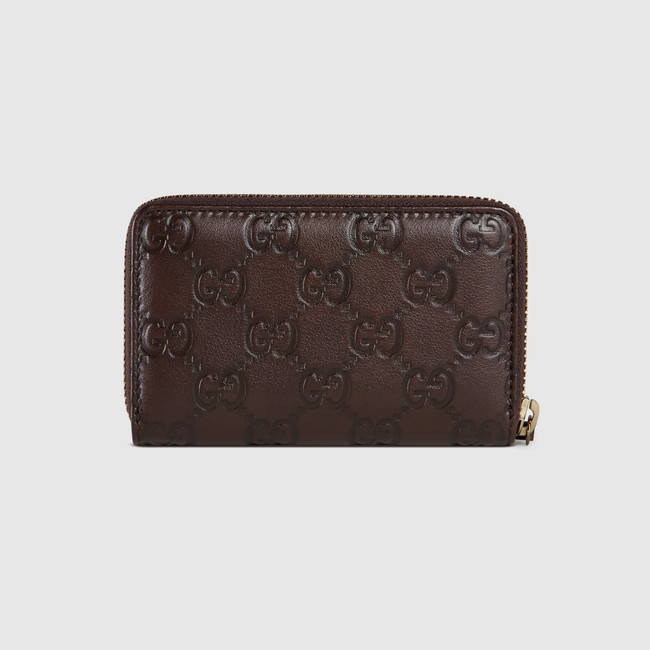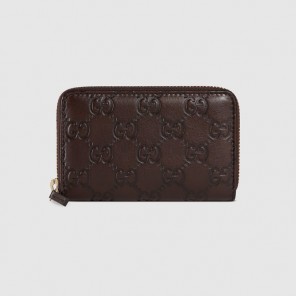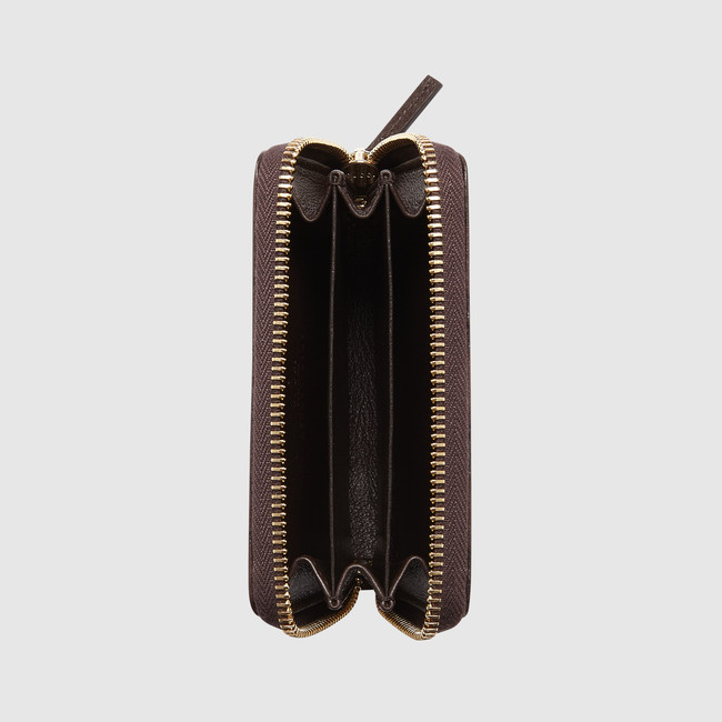 - Dark brown Guccissima leather with dark brown leather trim/interior- Gusseted sides- Three compartments- Zip around closure- Mini- 4.7"W x 3.1"H x 1"D