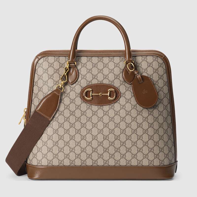 Inspired by the handbag introduced in Cruise 2020, the duffle bag presents a new shape for the Gucci Horsebit 1955 collection. The top handle is crafted from GG Supreme canvas and leather with a domed shape, completed with optional nylon shoulder strap. The collection unifies details first introduced on the original bag that inspired the line from over six decades ago with a modern spirit, highlighting the Horsebit. Part of Gucci鈥檚 genetic code, the double ring and bar design has been established as one of the most distinctive elements among the House symbols borrowed from the equestrian world. Pieces with versatile ways to wear and style embrace each person who is part of the House鈥檚 individual spirit.