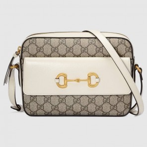 The Horsebit has become synonymous with the brand. Tracing back to Gucci's equestrian roots, the double ring and bar design is a piece of the House's heritage. The Epilogue collection's Gucci Horsebit 1955 unifies this original details first introduced over six decades ago with a modern spirit in a small beige and ebony GG Supreme shoulder bag completed by a special mechanism that adjusts the length of the shoulder strap so it can be carried on one shoulder or cross body.