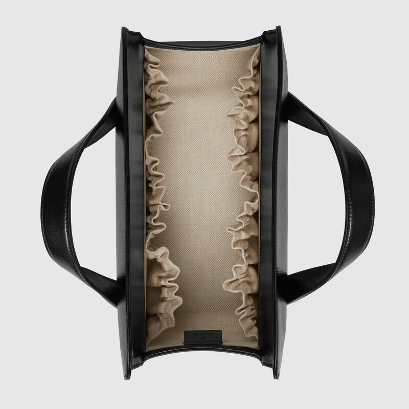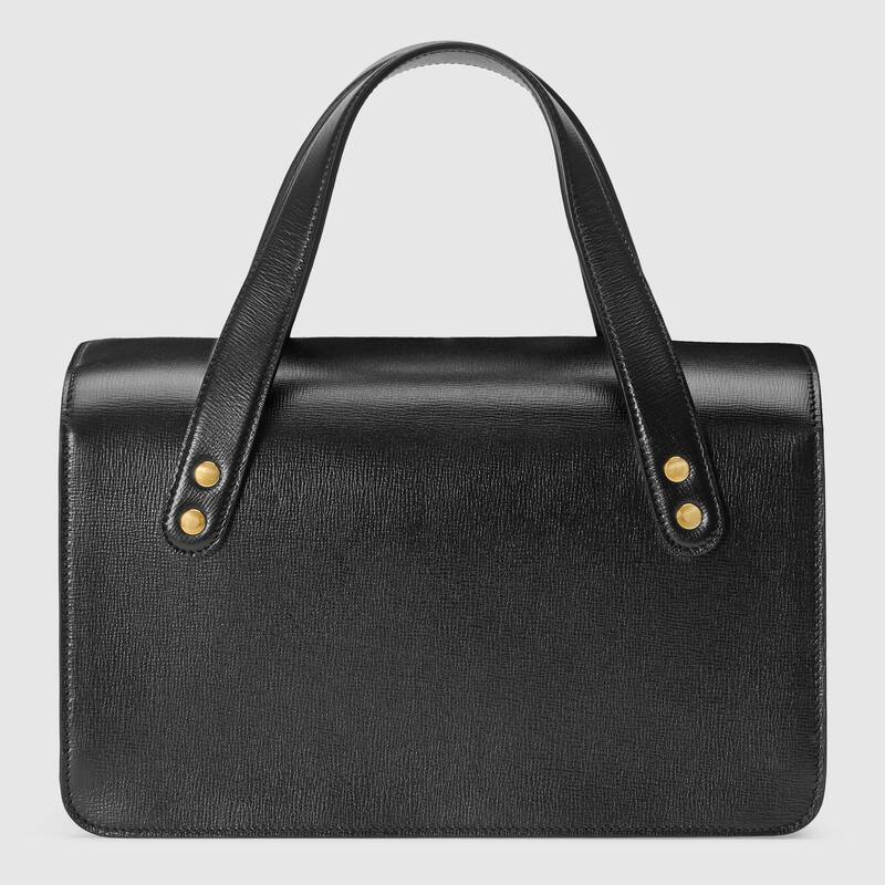 The top handle Boston bag is introduced within the Gucci Horsebit 1955 collection for Pre-Fall 2020 in black textured leather. Inspired by archival designs, the line unifies the original details first introduced over six decades ago with a modern spirit, highlighting the Horsebit. Part of Gucci鈥檚 genetic code, the double ring and bar design has been established as one of the most distinctive elements among the House symbols borrowed from the equestrian world.