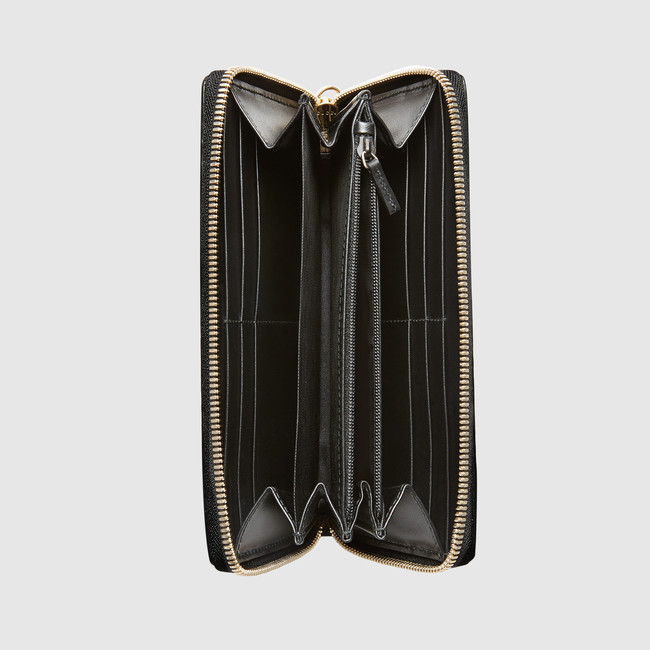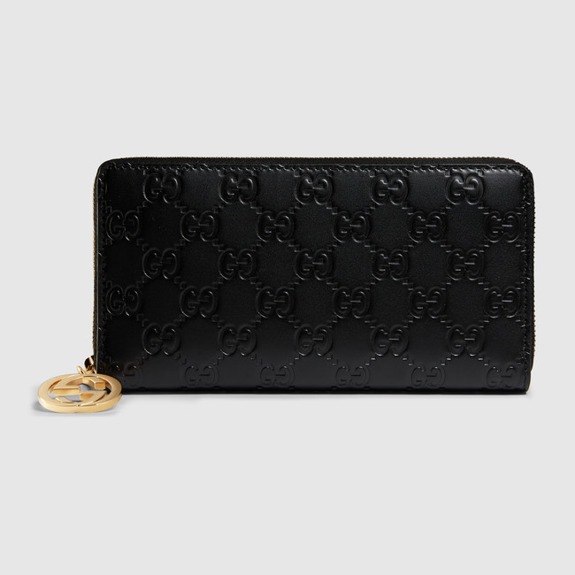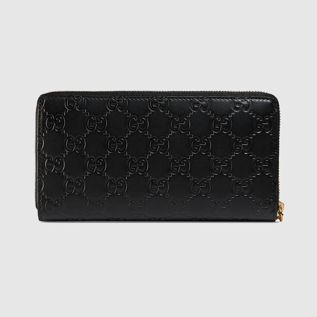 The House's initials sit on the front of this zip around wallet. Made in our heat embossed Gucci Signature leather resulting in a defined print with a firm texture.