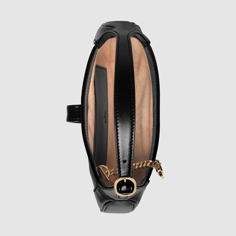 The reintroduction of the Jackie bag in a mini size for Fall Winter 2020 presents a new take on a historical Gucci icon. First created in 1961, the bag was often photographed with Jackie Kennedy and it soon became known as 鈥淭he Jackie." Brought back to the forefront, the recognizable shape is presented in black leather and enhanced with an additional, detachable shoulder strap. Attached to the bag with a buckle closure, the second strap adds a contemporary feel to the archival style, providing new ways to wear鈥攆rom top handle, shoulder to cross body.
