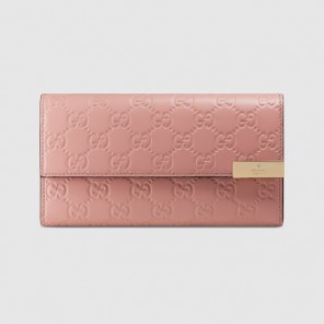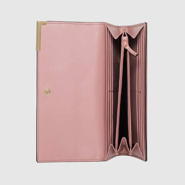 A leather chain wallet with a Gucci trademark metal plate in our embossed leather GG.