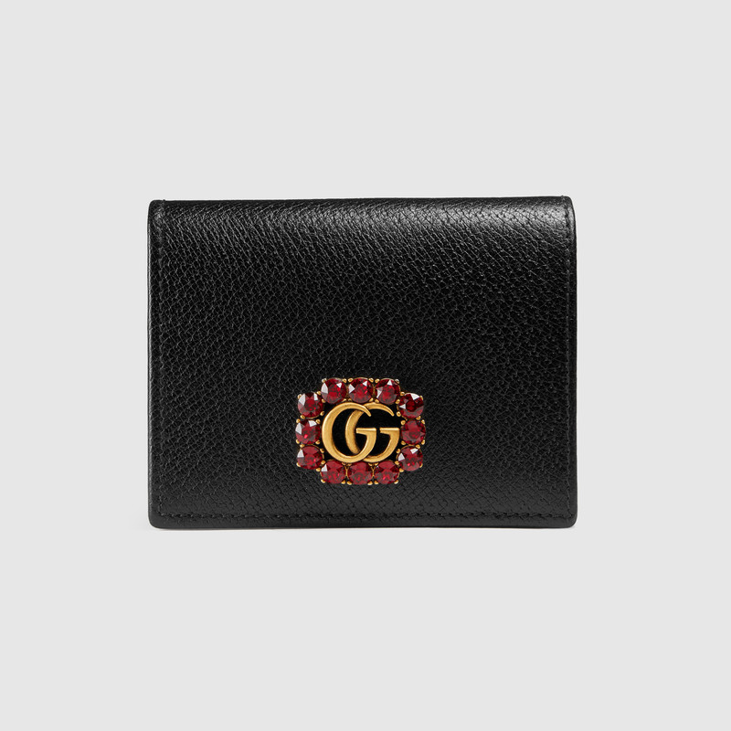Gucci Leather card case with Double G and crystals 499783 CWGHT 8230