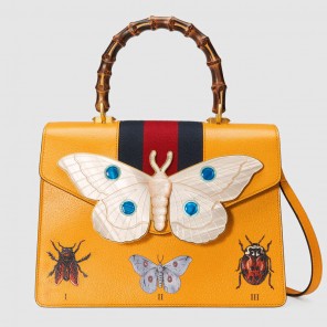 Gucci Leather top handle bag with moth 488691 0FF1T 7652