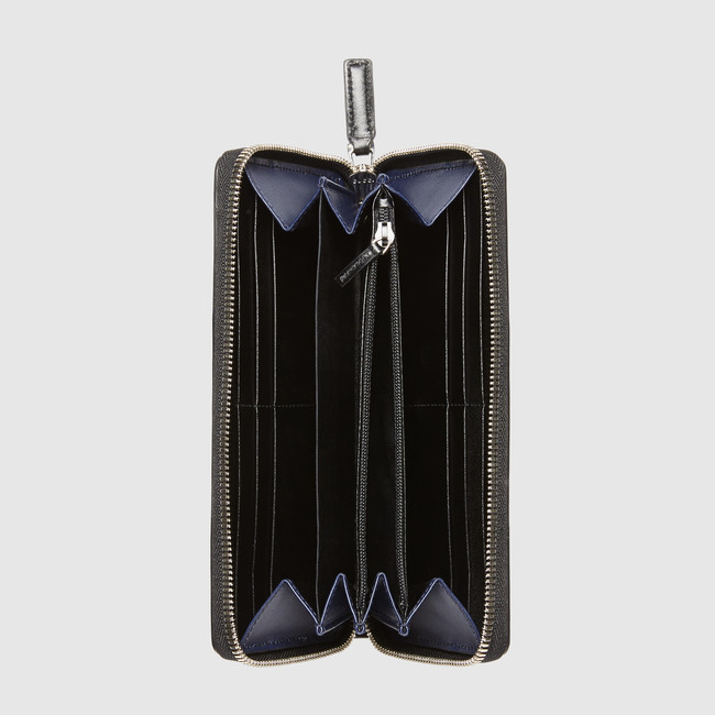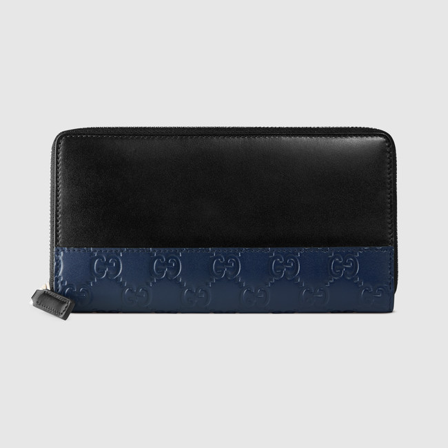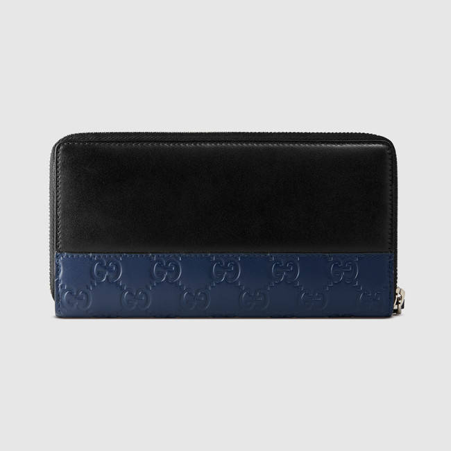 Leather zip around wallet with contrast Gucci Signature leather detail.