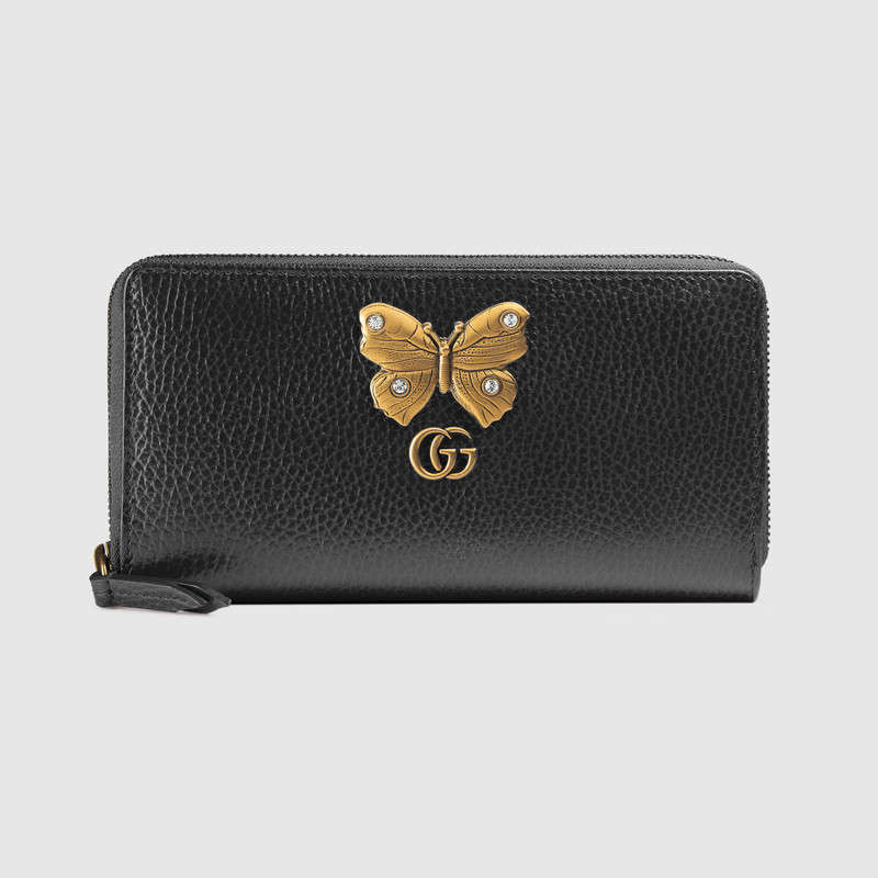 Gucci Leather zip around wallet with butterfly 499363 CAOGT 1081