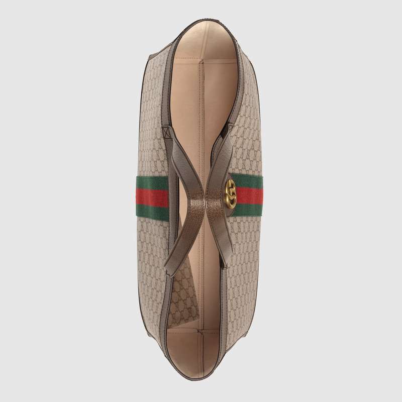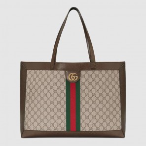 A classic combination of the House's most recognizable elements鈥攖he GG motif and Web stripe鈥攖he world of Ophidia continues to evolve, incorporating new shapes and silhouettes. The wide tote is made from supple soft GG Supreme canvas, trimmed with textured leather and topped with Double G hardware.
