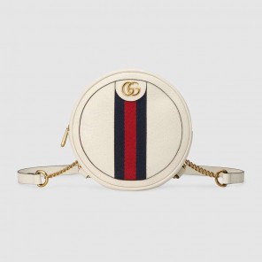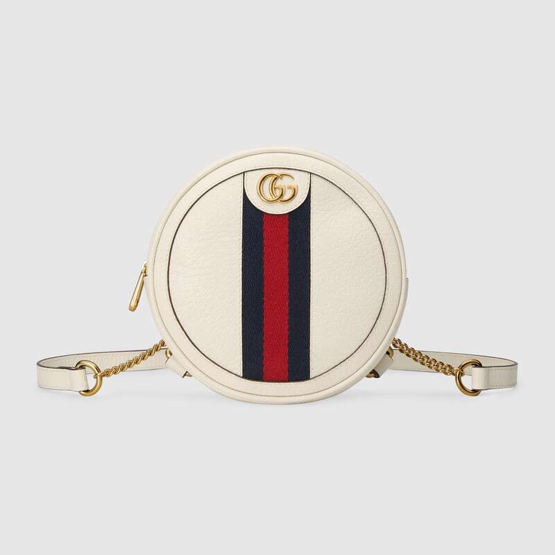 The world of Ophidia continues to evolve with the introduction of new accessories for Cruise 2020, including a round mini backpack in white leather. Trimmed with the historic blue and red House Web, the style is completed with interior card slots and adjustable shoulder straps.