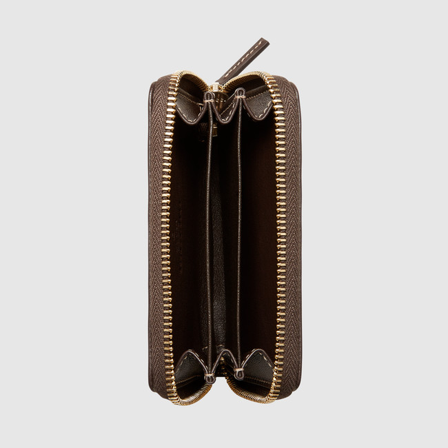 - Beige/ebony Original GG canvas with brown leather trim/interior- Gusseted sides- Three compartments- Zip around closure- Mini