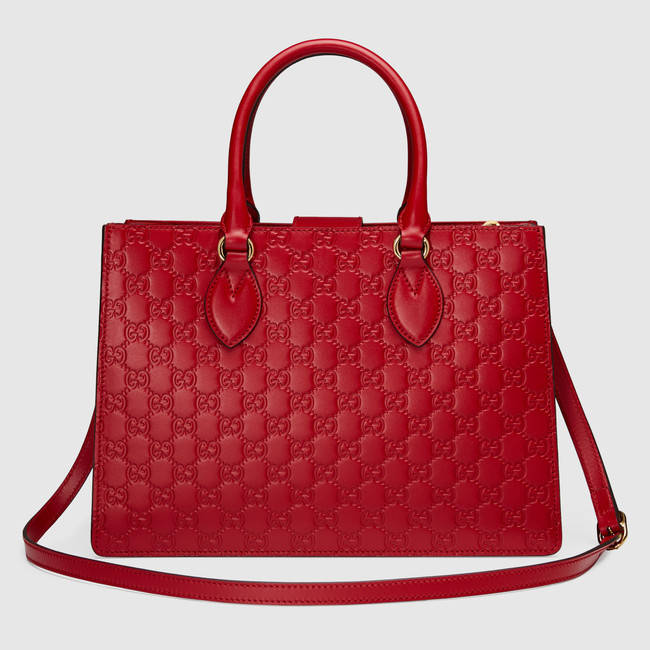 - Hibiscus red Gucci Signature leather with hibiscus red leather detail