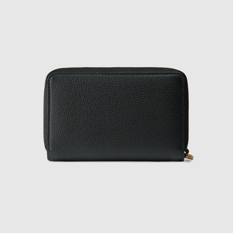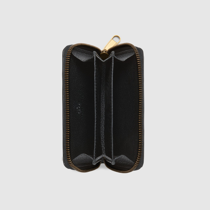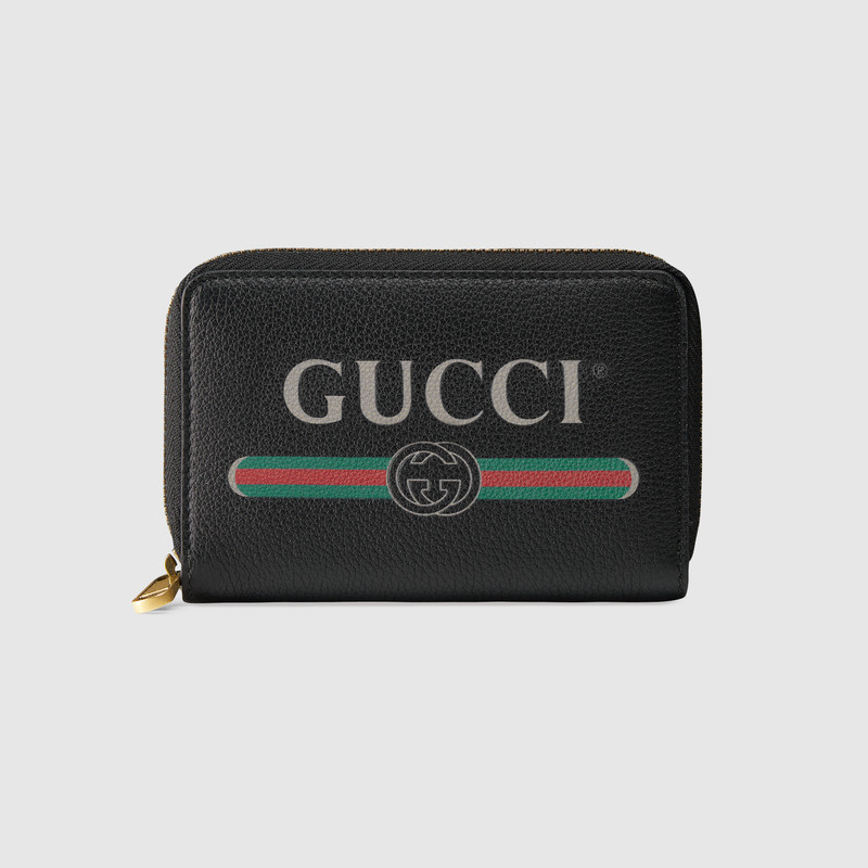Inspired by vintage prints from the eighties, the Gucci logo is brought to the forefront. The retro-style motif is presented on the front of a zip around card case in supple, textured leather.