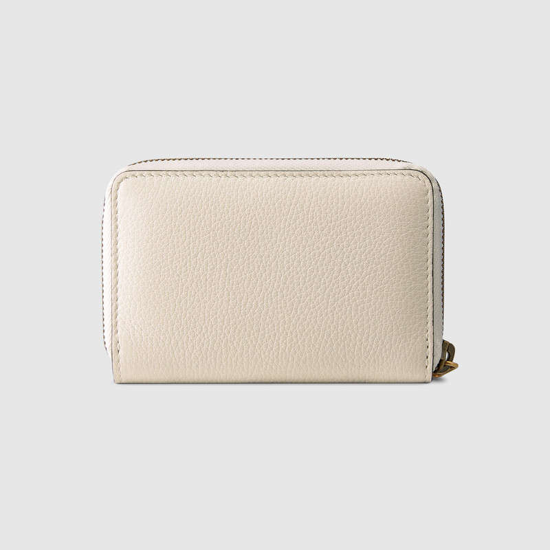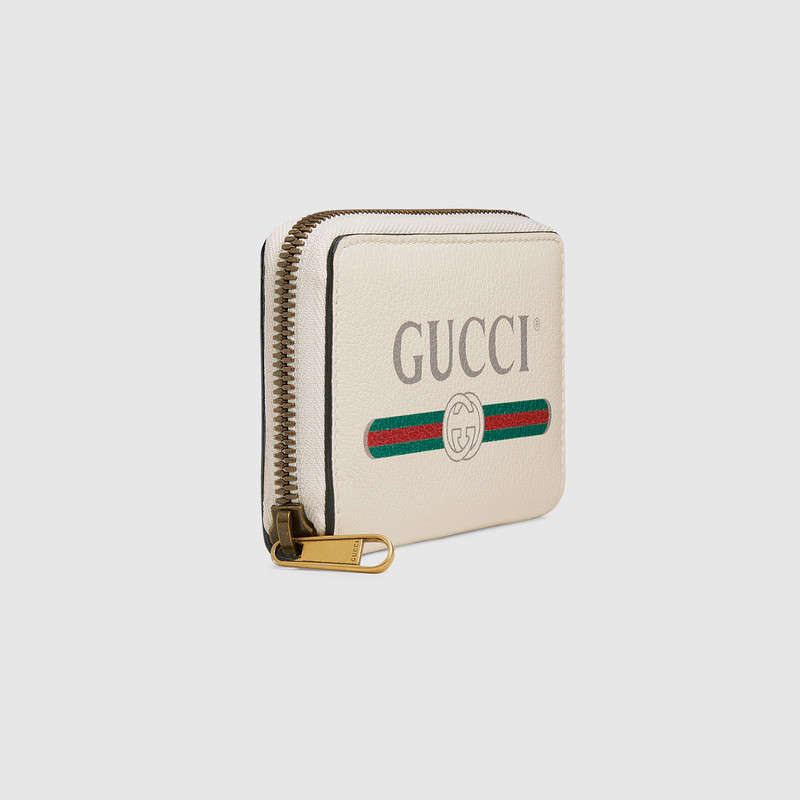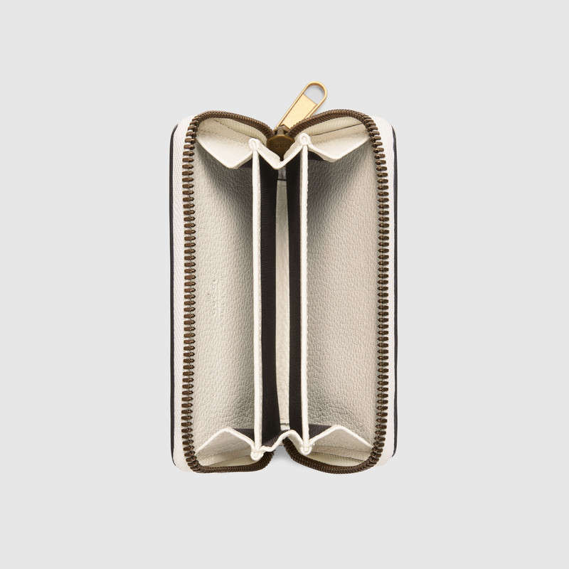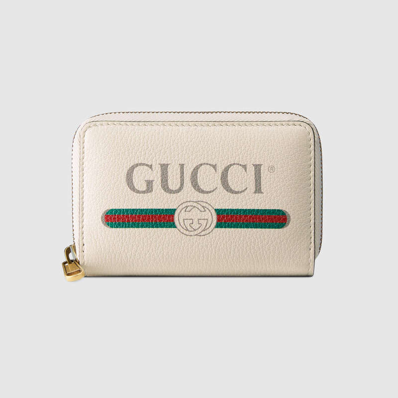 Inspired by vintage prints from the eighties, the Gucci logo is brought to the forefront. The retro-style motif is presented on the front of a zip around card case in supple, textured leather.