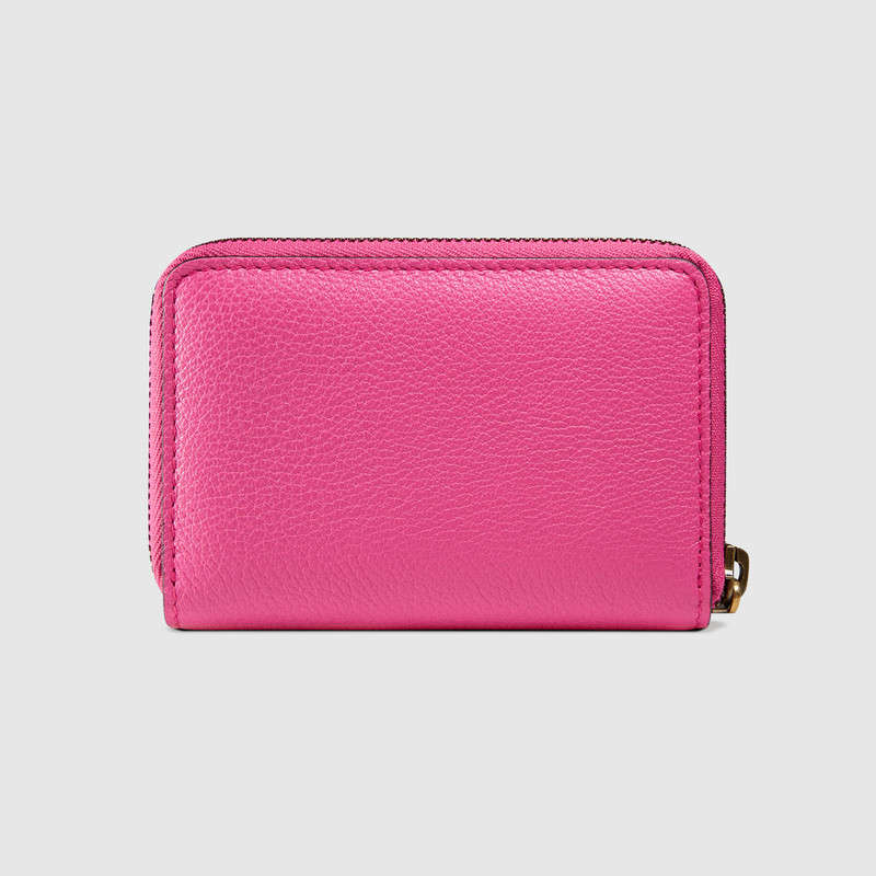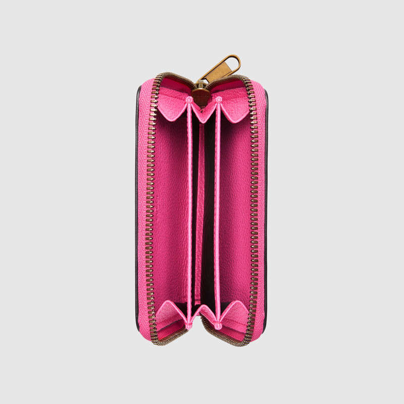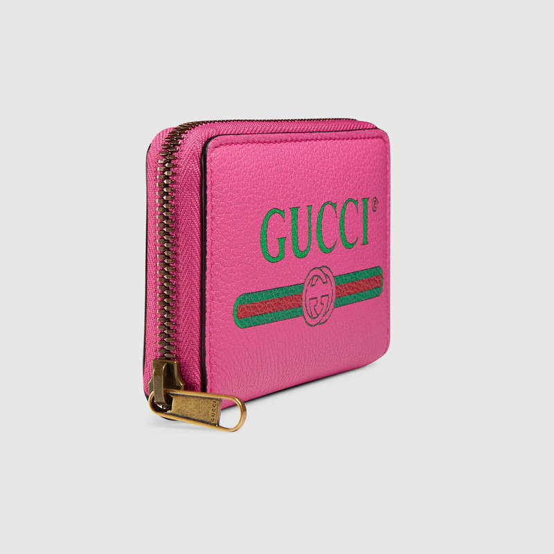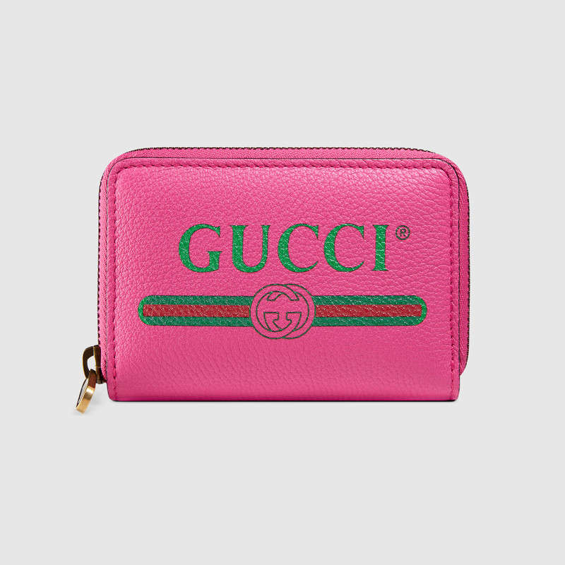 Inspired by vintage prints from the eighties, the Gucci logo is brought to the forefront. The retro-style motif is presented on the front of a zip around card case in supple, textured leather.