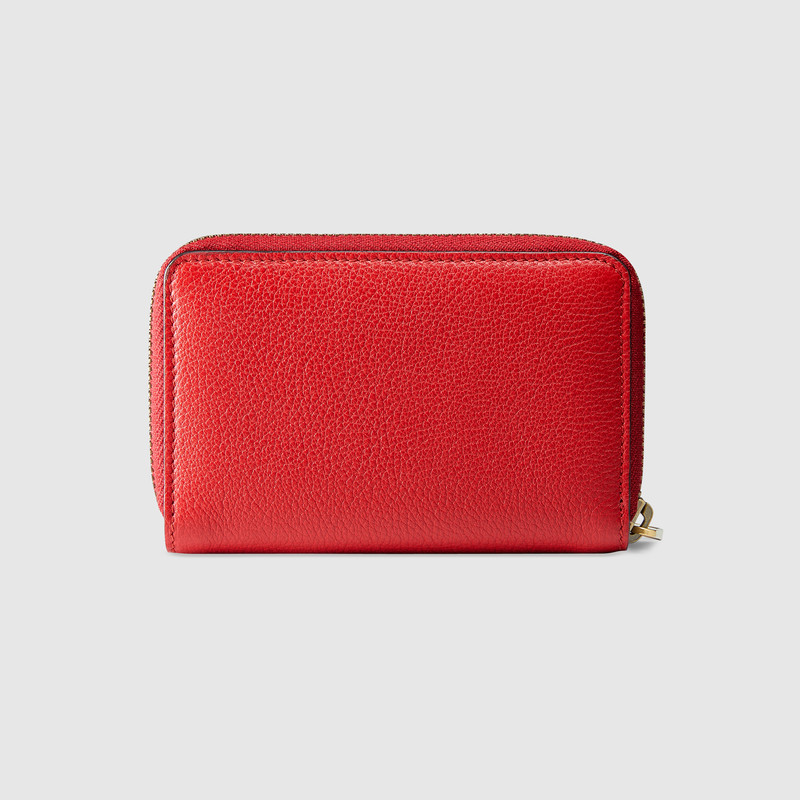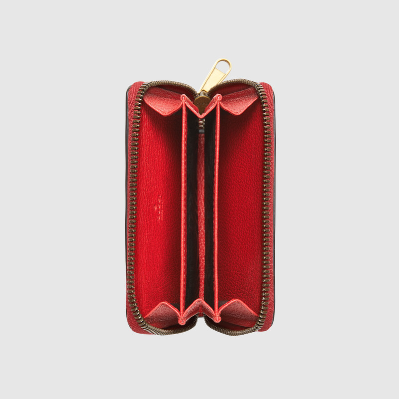 Inspired by vintage prints from the eighties, the Gucci logo is brought to the forefront. The retro-style motif is presented on the front of a zip around card case in supple, textured leather.