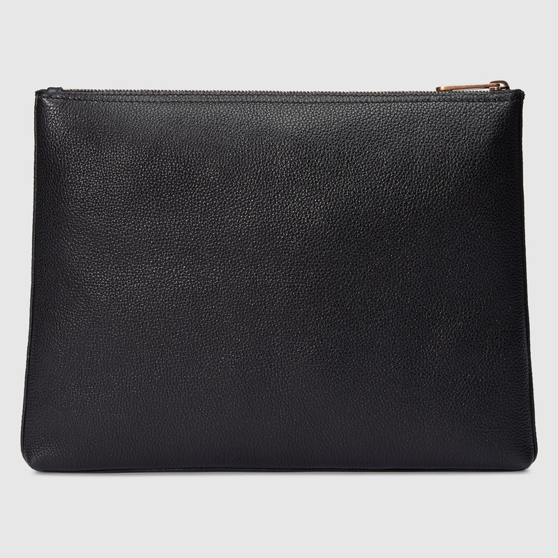 Inspired by vintage prints from the eighties, the Gucci logo is brought to the forefront. The retro-style motif is presented on the front of a medium-sized portfolio in supple, textured leather.