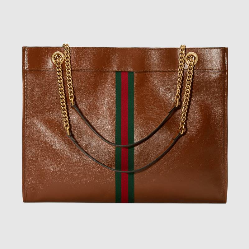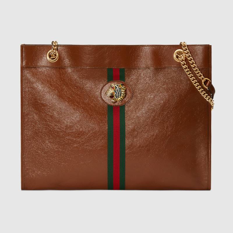 Now synonymous with the Rajah line, the tiger head, finished with colored enamel and sparkling crystals, is inspired by a vintage piece from legendary fashion and jewelry designer Hattie Carnegie's 1940s archives. For Spring Summer 2019, the detail has continued to define this line of retro-inspired handbags.