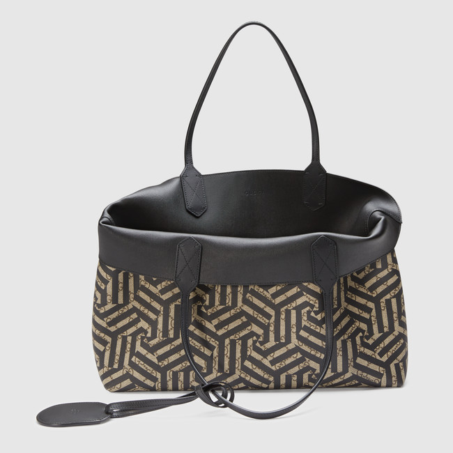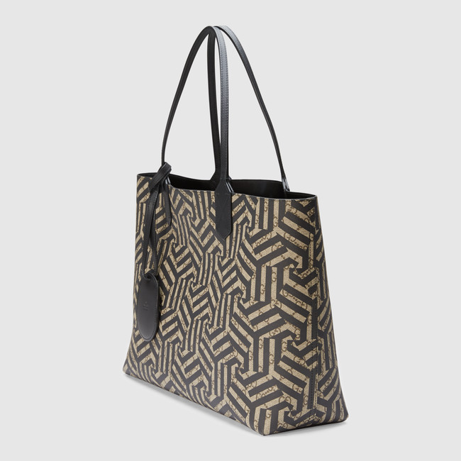 Designed with solid leather on one side and GG leather with Caleido print on the other, this medium size tote is made with an innovative reversible leather quality, patented exclusively to Gucci.