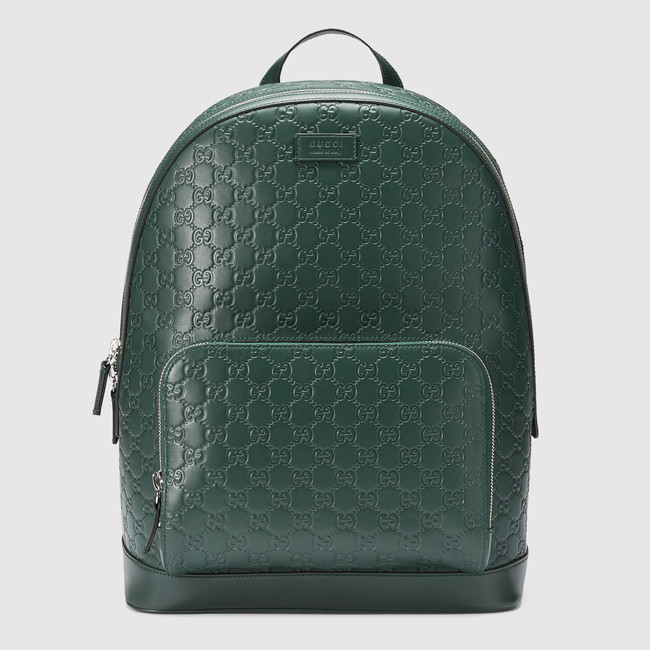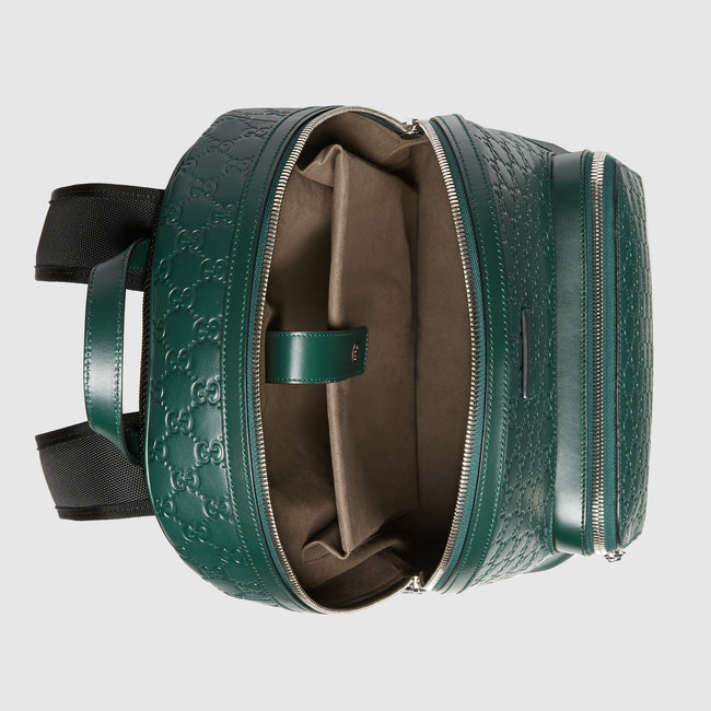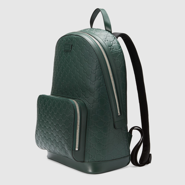 A classic backpack shape, featuring a front zip pocket and multiple interior pockets, including a padded iPad sleeve. Made in our embossed Gucci Signature.