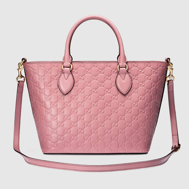 - Candy pink Gucci Signature leather with candy pink leather detail