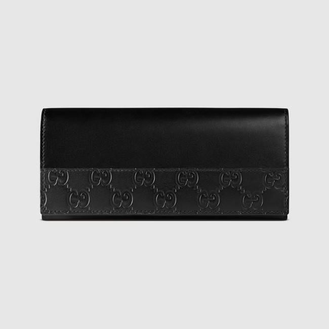 Leather long coin wallet with tonal Gucci Signature leather detail.