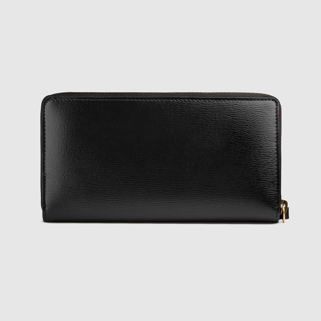 The kingsnake, thought to symbolize wisdom and power, emerges as one of the signature details of Alessandro Michele's collections. Here, it is printed at the center of a zip around wallet made in black leather.