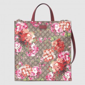A slim tote with Blooms print, made in soft GG Supreme, a softer version of GG Supreme canvas, crafted from a coated microfiber fabric with the GG motif. Designed to be worn two additional ways, the tote comes with a removable shoulder strap or can be folded in half to be used as a clutch.