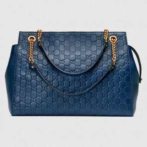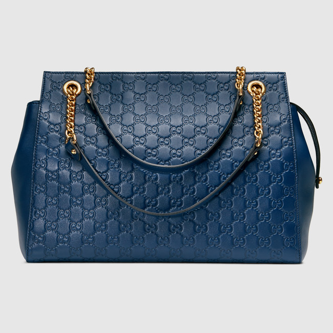 - Dark blue soft Gucci Signature leather with dark blue leather details