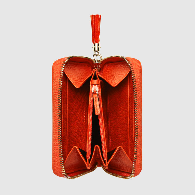 A small zip around shape made in our light, natural grain leather.