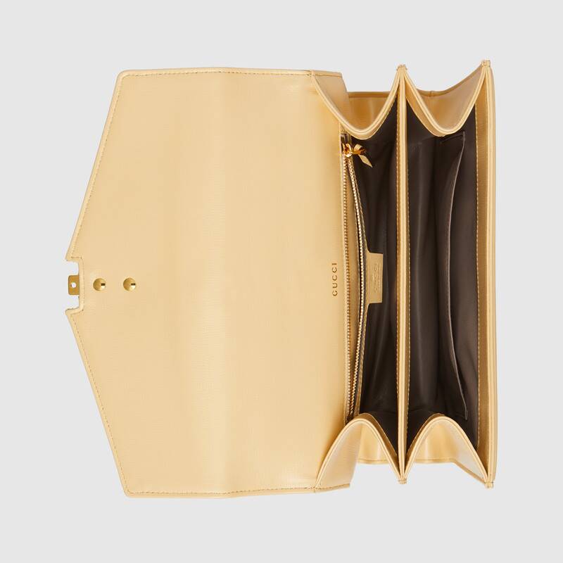- Shiny gold-toned hardware