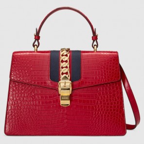 Gucci Sylvie crocodile top handle bag 431665 EV4CG 6473
