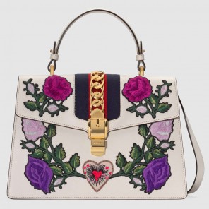 Gucci Sylvie embroidered medium top handle bag 431665 D4ZRG 8406