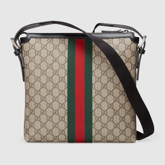 A slim messenger bag made in our signature GG Supreme canvas with green/red/green web detail.