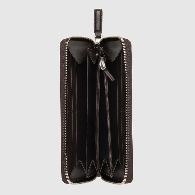 GG Supreme canvas zip around wallet with signature web and bee detail.
