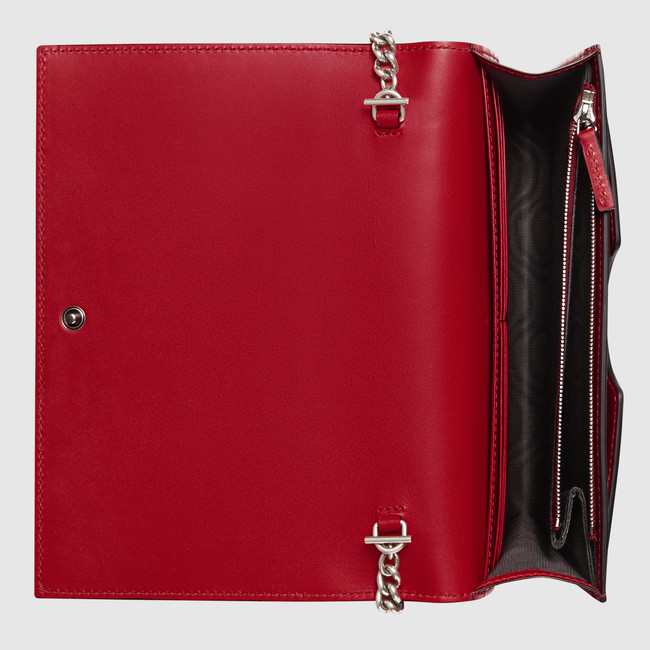 The Gucci XL mini bag has an embossed Gucci logo that extends across the front of the bag and a removable chain strap. Made in our smooth, classic leather.