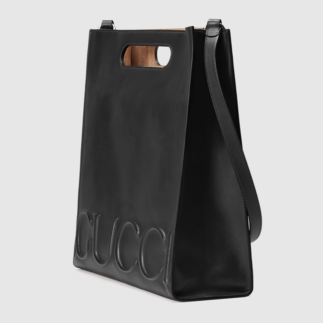 The large Gucci XL tote has an embossed Gucci logo that extends across the front of the bag. Made in our smooth, classic leather.