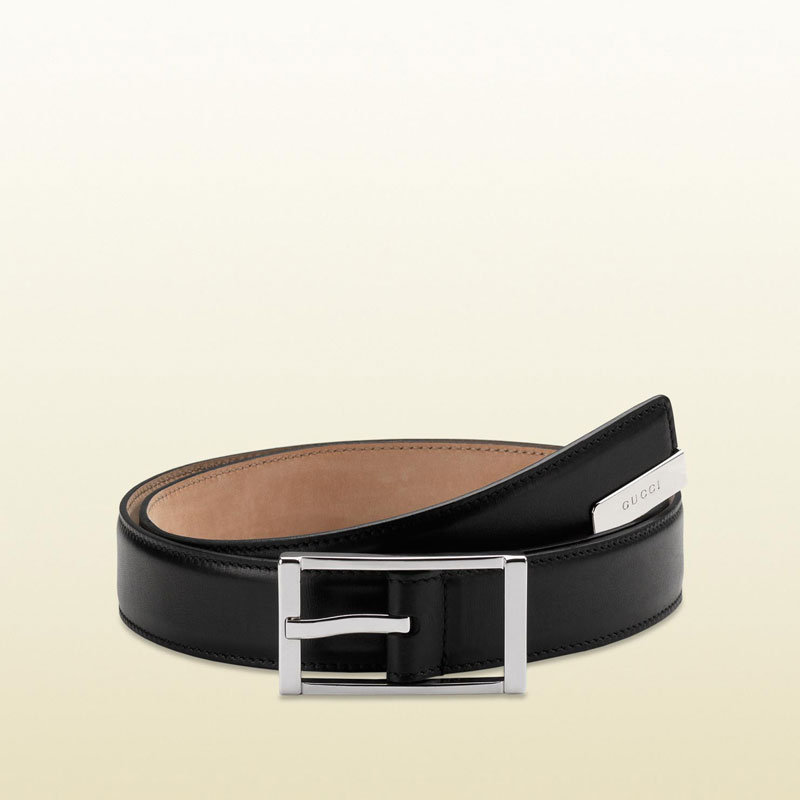 Gucci black leather belt with rectangular buckle 268239 A490N 1000