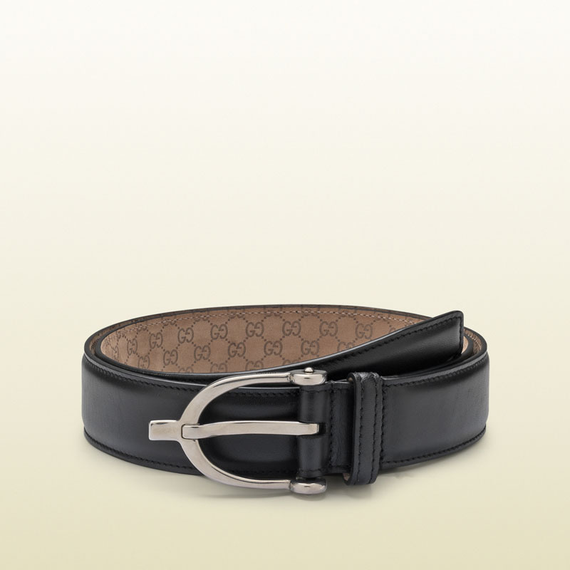 Gucci black leather belt with spur buckle 309264 BGH0N 1000